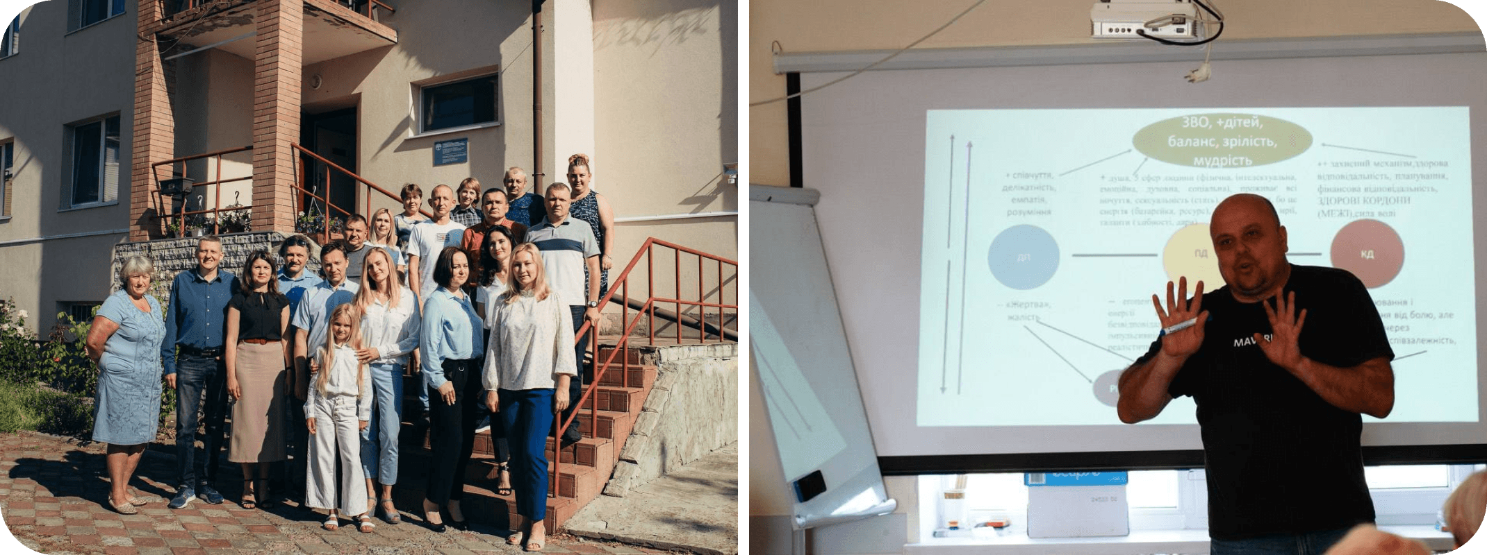 3 2023 року наша організація бере активну участь у розробці та впровадженні навчальних програм для психологів, соціальних працівників та інших спеціалістів, які працюють або планують працювати з людьми, що пережили різні види травм та насильства, в тому числі в умовах війни.