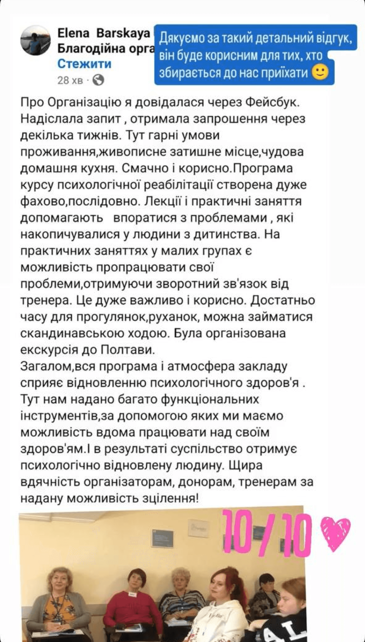 Пост відгук учасниці онлайн-тренінгу Віти Копач із Миколаєва